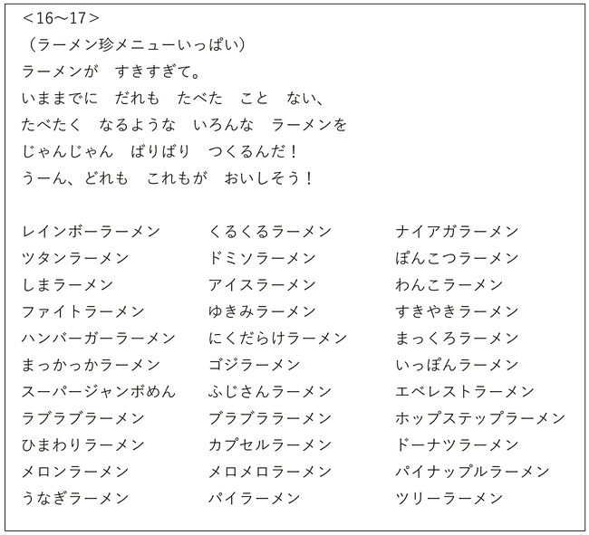 サトシンさんが全国を講演会にまわりながらラフを読むと、多くの書店員さん、保育士さん、子どもたちから「ええー何これ!(笑)」「妄想すごっ」と笑いの渦が。『おすしがすきすぎて』から、ますます妄想と笑いがパワーアップした『ラーメンがすきすぎて』は、読み聞かせ会にもオススメです。