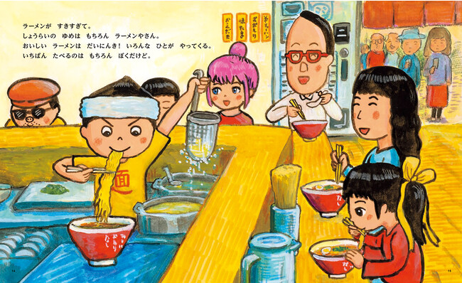 ぐるなびリサーチ(2023年)によると、小学生の好きな食べものランキングで、ラーメンは第3位のお寿司に次いで、堂々の第4位! 本書の絵本を読んでくれた子どもたちに聞くと、どの子も口をそろえて「ラーメン大好き!」。ラーメンは、時代を超えて不動の人気です。ラーメンが題材の絵本というだけで、子どもたちも興味津々。好きという気持ちが読書熱も引き出してくれます。