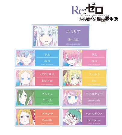 エミリア、レム、ラム、ベアトリス、フェルト、クルシュ、アナスタシア、プリシラ、ペテルギウスを新たなタッチで魅力的に表現し、アクリルネームプレートに仕上げました。