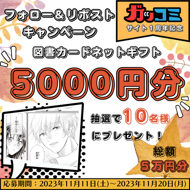 フォロー&リポスト(リツイート)でカンタン応募! 2023年11月20日(月)締切 https://twitter.com/g_manganichirek