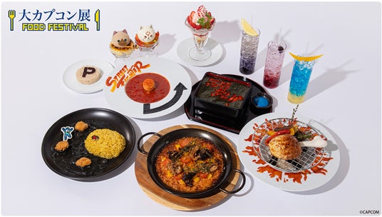 カプコンのゲームの世界や登場キャラクターをイメージした、ワクワクすること間違いなしの「大カプコン展」コラボメニューを開発! 展覧会と一緒に味わえば二度おいしい! ご来場の際、是非あわせてお楽しみください。
