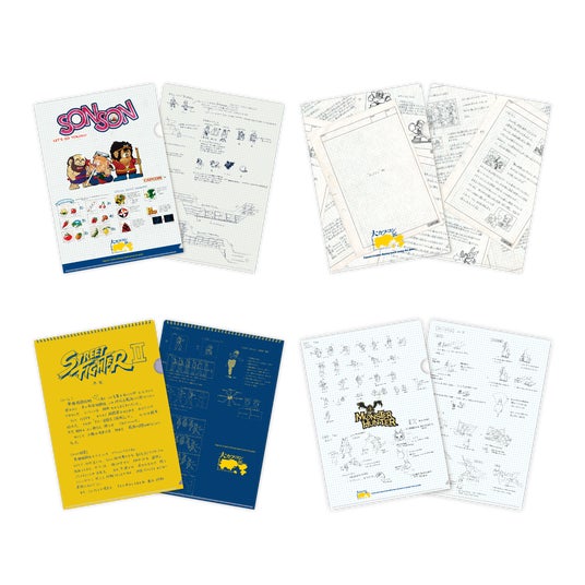 本展に展示されている、『ソンソン』、『ロックマン』、『ストリートファイターII』、『モンスターハンター』の、貴重な企画書をクリアファイルにしました。