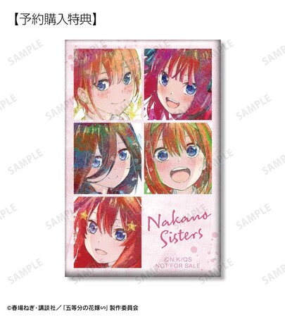 中野一花、中野二乃、中野三玖、中野四葉、中野五月を新たなタッチで魅力的に表現し、スクエア缶バッジに仕上げました。