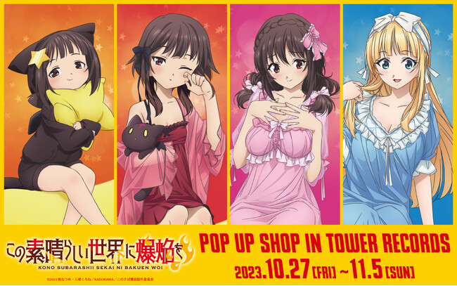タワーレコード3店舗とオンラインにて、アニメ「この素晴らしい世界に爆焔を!」のイベント「『この素晴らしい世界に爆焔を!』POP UP SHOP in TOWER RECORDS」を開催いたします。