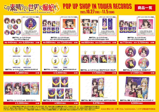 漫画・アニメのオリジナルグッズを販売する株式会社アルマビアンカはタワーレコード株式会社と共同で「『この素晴らしい世界に爆焔を!』POP UP SHOP in TOWER RECORDS」を開催いたします!
