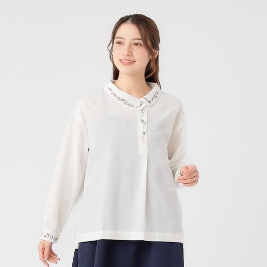 3.オーガニック綿入 強撚刺繍入ブラウス