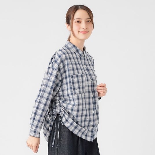 1.オーガニック綿入 ドロスト使いチェックシャツ