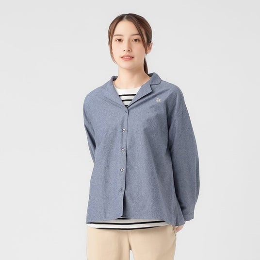 2.オーガニック綿入 シャンブレー刺繍入シャツ