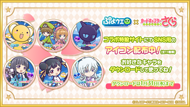◆『ぷよぷよ!!クエスト』×TVアニメ『カードキャプターさくら クリアカード編』コラボ記念特設サイトにてSNS用にアイコン配布中