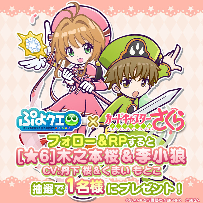 株式会社セガは、大好評配信中のパズルRPG『ぷよぷよ!!クエスト』にて、TVアニメ『カードキャプターさくら クリアカード編』とのコラボレーションイベントを、本日2024年1月18日(木)より開催することをお知らせします。