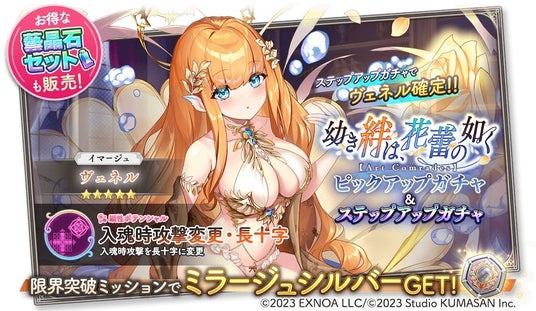 また、ステップ5にて★5イマージュ「ヴェネル」を確実にゲットできる5ステップアップガチャも同時開催いたします。