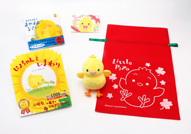 世界累計1,000万部を突破した(翻訳出版も含めたシリーズ累計発行部数/2023年11月現在)人気の絵本シリーズ「ぴよちゃんえほん」は、小さいお子さまが最初に手にする絵本として、数多くの親子に選ばれてきたロングセラー児童書です。愛され続けて、今年で20周年を迎えました。記念すべきアニバーサリーイヤーに、大人気の絵本と、ショップ学研+でしか買えないぴよちゃんのぬいぐるみが入ったスペシャルなギフトセットを限定でご用意いたしました。