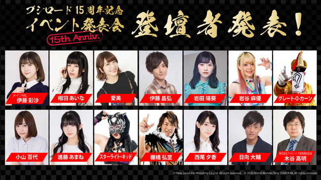 ・登壇者:相羽あいな、愛美、伊藤昌弘、岩田陽葵、岩谷麻優、グレート-O-カーン、小山百代、進藤あまね、スターライト・キッド、棚橋弘至、西尾夕香、日向大輔、(五十音順)
