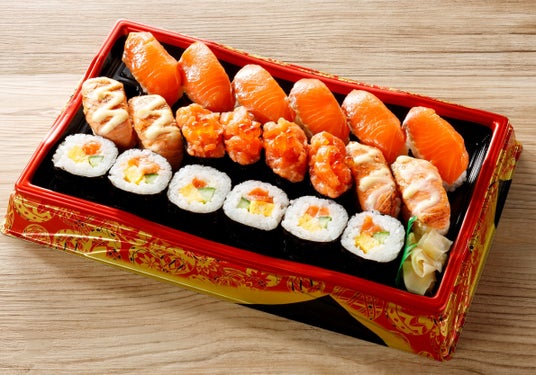 人気のネタのサーモンを贅沢に使用した握り寿司と、サーモンのサラダ中巻を組み合わせた満足セットです。とろけるようなサーモン、炙りサーモンといろいろな味わいを楽しめるサーモンづくしの盛合せです。
