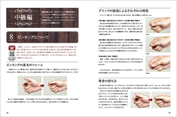 また、本書の譜例はすべてYouTubeにも対応しており、実際に映像を見て、聴いて、学ぶことができます。フラット・マンドリンの美しい造形に惹かれた方はもちろん、実は以前からマンドリンも弾いてみたいと感じていたギタリストやウクレレ・プレイヤーも、ぜひ一緒にマンドリンを始めましょう。