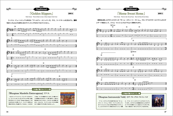 しかし、そんな音楽に憧れていざマンドリンを始めようと思っても、クラシック・マンドリンではなく、フラット・マンドリンを主題とした日本語の教則本はほとんどありません。本書は、ブルーグラスで歌われるトラッド・ソングを中心に学びつつ、ポップス、ロックでも応用がきくフラット・マンドリンの基礎を、イチから学べる決定版となります。さらに、意外と知らないマンドリンの弦交換の方法や、その歴史、素敵なマンドリンが聴ける音源の紹介も必見です。