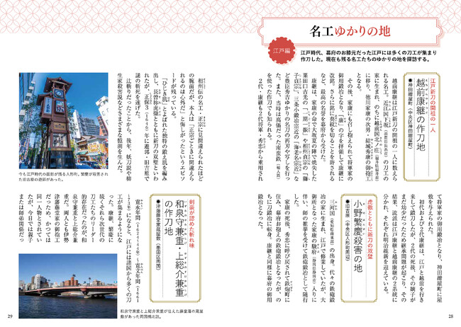 名刀をつくった名工たちのゆかりの地を紹介。作刀地や墓所、史跡や銅像など、江戸(東京)と全国に分けてそれぞれ案内します。