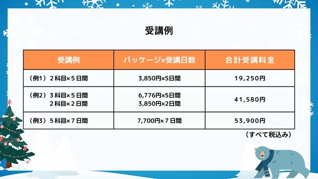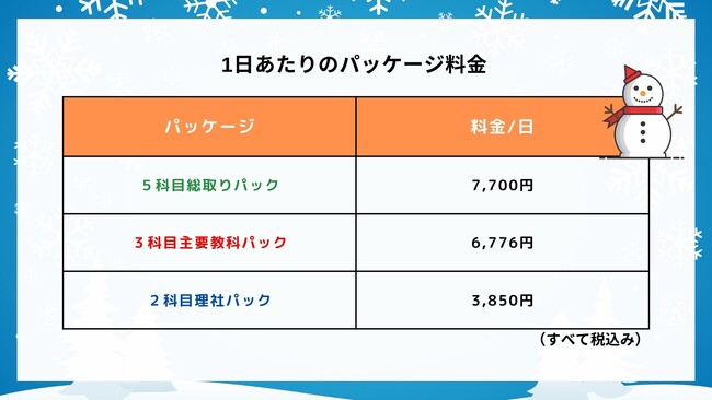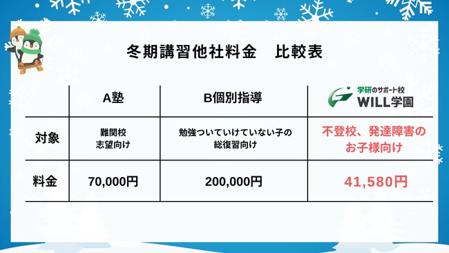 1.不登校、発達障害の生徒のみなさんに特化した冬期講習が、他社よりも安価に受けられる!