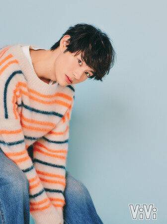 撮影ではカラフルなニットにデニムの合わせと、クリーンなロングコートの2ポーズの衣装を着こなしてくれました。衣装決めの際には「こっちの方が良さそうですね!」と率先して意見を出してくれる頼もしい一面を見せてくれたかと思えば、セルフィーをお願いすると「全然撮らないから難しいですね」と試行錯誤しながらも色々な撮り方を試してくれる可愛らしい一面も。シュッとした正統派のキメ顔がカッコいいのはもちろん、時折見せるニコッとした笑顔の柔らかさもサマになる、“あざと硬派”な両A面の魅力を存分に披露してくれた撮影となりました。ぜひViVi1月号の誌面をご堪能ください。