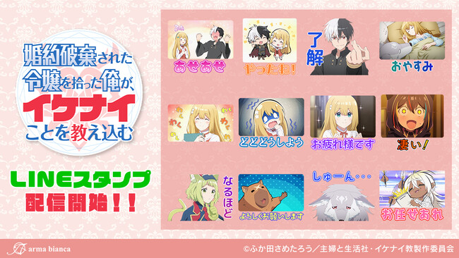 株式会社アルマビアンカ(本社:東京都中野区、代表取締役:坂井智成)はTVアニメ「婚約破棄された令嬢を拾った俺が、イケナイことを教え込む」のLINEスタンプ配信を11月8日(水)より開始いたしました。