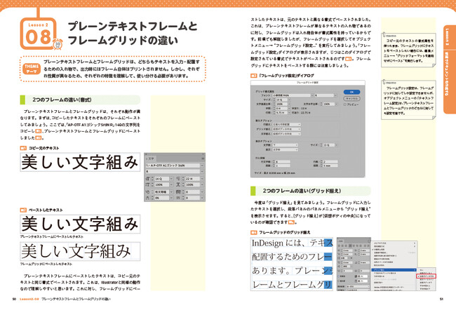 また、印刷物を制作するうえでは、印刷や造本の知識も欠かせません。印刷用語についても解説しているので、ソフトウェアの機能をマスターできるだけでなく、仕事のための本当の基礎力が身につきます。解説内容は最新バージョン2024に対応、紙面に掲載のサンプルデータをダウンロードできます。