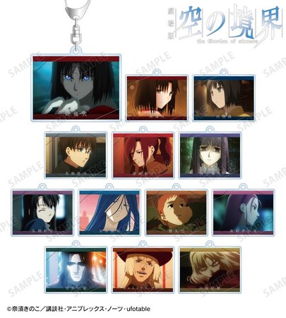 両儀式、両儀織、黒桐幹也、蒼崎橙子、浅上藤乃、黒桐鮮花、巫条霧絵、臙条巴、黄路美沙夜、荒耶宗蓮、コルネリウス・アルバ、白純里緒の印象的なシーンをアクリルキーホルダーに仕上げました。