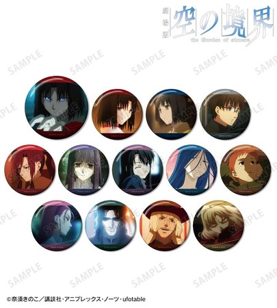 両儀式、両儀織、黒桐幹也、蒼崎橙子、浅上藤乃、黒桐鮮花、巫条霧絵、臙条巴、黄路美沙夜、荒耶宗蓮、コルネリウス・アルバ、白純里緒の印象的なシーンを缶バッジに仕上げました。