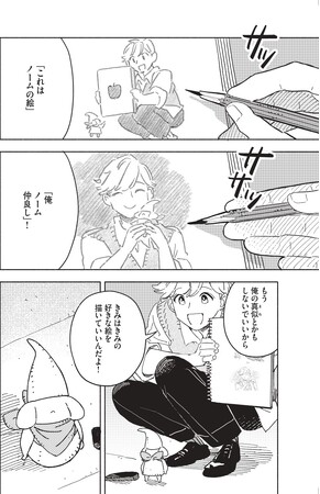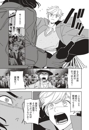 配信サイト「モーニング・ツー・WEB」で連載されたこの作品は、戦争の影が忍び寄る小さな国の若き画家・モーリスが新種の生物ノームと出会うところから始まる。「やり方を見せれば、すぐに同じことができる」というノームの能力に感激するモーリス。しかし、次第に画家たちの仕事がノームに奪われていき――。