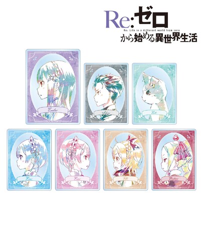 エミリア、スバル、パック、レム、ラム、フェルト、ベアトリスを新たなタッチで魅力的に表現し、アクリルカードに仕上げました。
