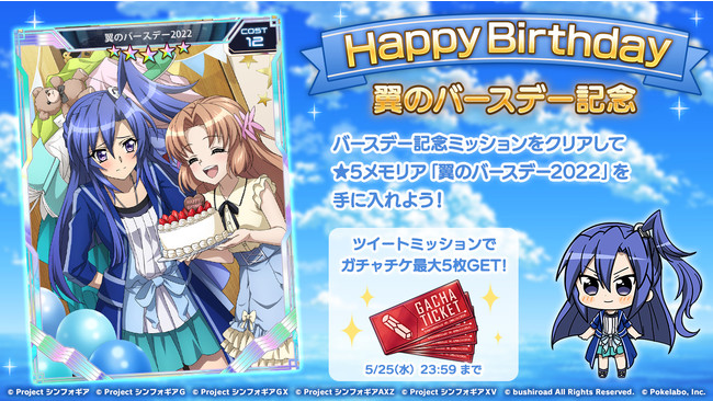 株式会社ブシロード(本社:東京都中野区、代表取締役社長:橋本義賢)と株式会社ポケラボ(本社:東京都港区、代表取締役社長:前田悠太、グリー株式会社100%子会社)は、好評配信中のスマートフォン向けゲームアプリ「戦姫絶唱シンフォギアXD UNLIMITED」にて、風鳴翼の誕生日を記念したキャンペーンを2022年5月25日(水)0:00より配信開始したことをお知らせします。