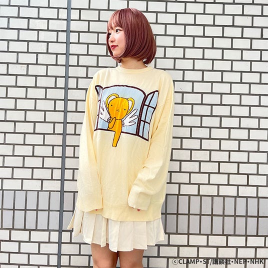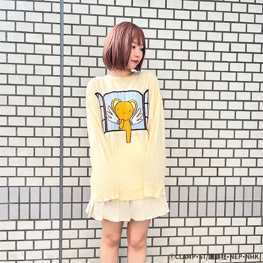 さくらちゃんの制服をイメージしたカーディガン、コスチューム風ベスト、ソックスや ケロちゃんが小窓から覗いているように見える、ふわもち素材のニットプルオーバーなど盛り沢山!