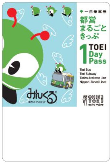 都営まるごときっぷ(都営交通一日乗車券)は、都営地下鉄、都営バス(江東01系統を除く。)、東京さくらトラム(都電荒川線)、日暮里・舎人ライナーを1日に限り何回でもご乗車できるお得な乗車券です。