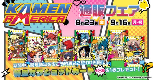 アメリカンコミック作品『Kamen America』の新商品キャラクターグッズを、全国のアニメイト、アニメイトオンラインショップ、ムービック通信販売等にて発売いたします。