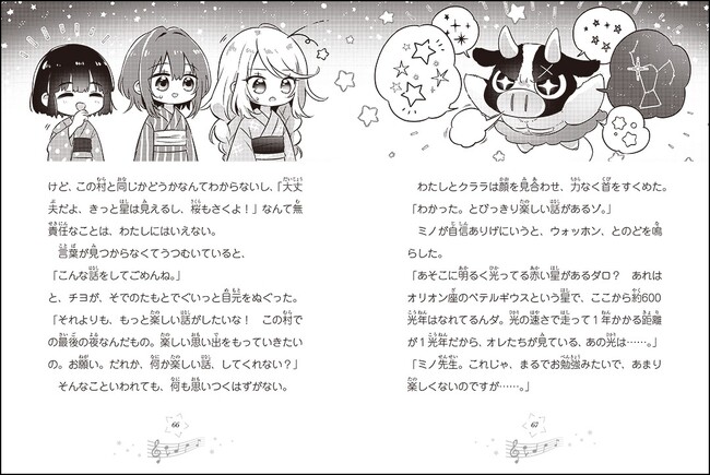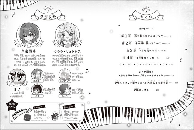 本作は、主人公の花美とクララ、ミノが力を合わせ、ストリートピアノや、折りたためるロールピアノの演奏を通して人々に夢や希望を与えていく物語です。作家・柴野理奈子さんがつづる、3人と各世界で出会う人々との友情に注目。微笑ましい恋バナもあります。
