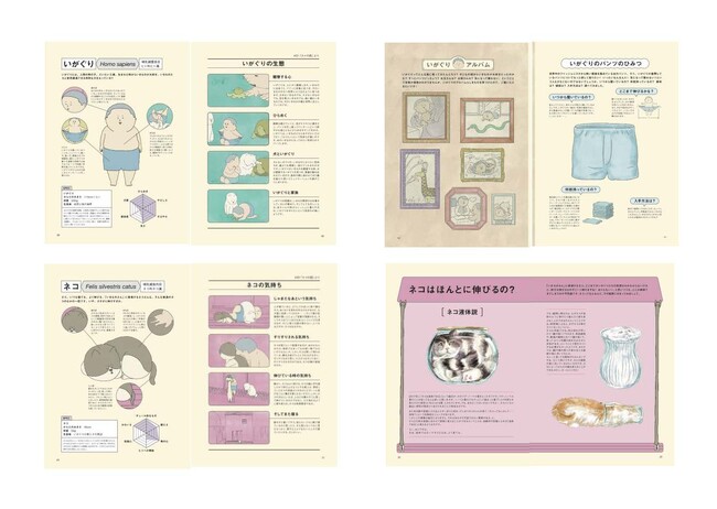 本書は、このほのぼのと楽しそうな「いきものさん」のキャラクターとストーリーを動物図鑑の体裁で魅せる一冊です。