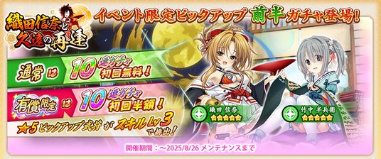 2025年8月20日(水)から開始する後半のガチャでは『織田信奈の野望 全国版』からさらに1名が登場!