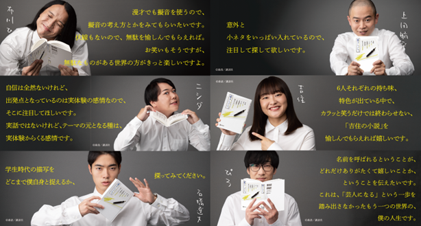 今話題の人気芸人豪華6名による短編集『書きしごと。』を12月14日(木)に発売。青春、純文学、シュールにSF、ほっこり日常系からミステリーまで。もぎたて小説てんこ盛り。