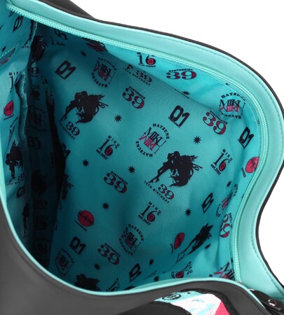 裏地は初音ミクのシルエットや各種モチーフやイメージカラーを使用した総柄がプリントされております。