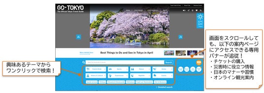 東京都及び(公財)東京観光財団は、東京の観光公式サイト「GO TOKYO」を運営し、国内外に向けて東京の魅力ある観光情報を発信しています。このたび、旅行者が目的の観光情報をよりスムーズに入手できるようサイトのデザインを一新して機能強化しましたので、お知らせします。