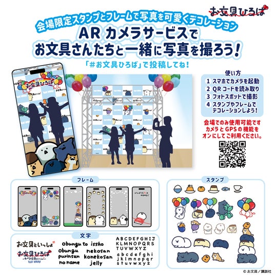 お文具ひろばでは、フォトスポットをたくさんご用意しております。〈ARカメラフォトスポット〉は、お文具ひろば限定のスタンプとフレームで特別な写真が撮れちゃいます。