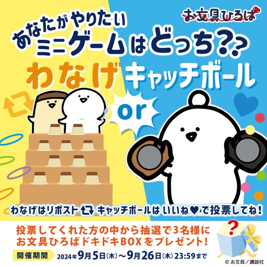 あなたはどっちがやりたい?投票でプレゼントキャンペーンお文具ひろばで体験できるミニゲーム〈わなげ〉と〈キャッチボール〉のどちらをやってみたいかを投票しよう!