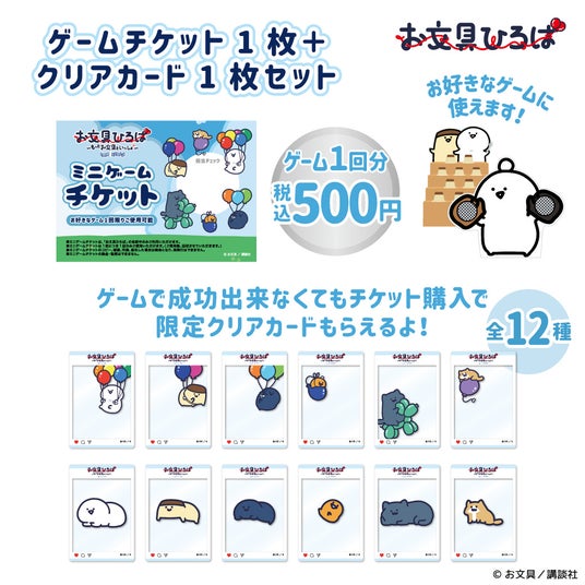ゲームチケットにはお文具ひろば限定クリアカード(全12種)が1枚セットになっております。