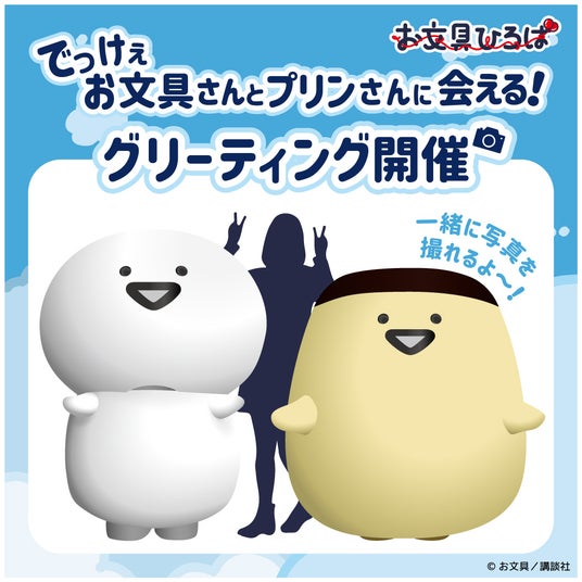 でっけぇお文具さんとプリンさんがお文具ひろばに遊びにきます!会場で販売している商品を3,300円(税込)以上お買い上げいただくと、グリーティングに参加が可能となります。詳しいスケジュールなどは、お文具ひろば公式イベントページをご確認ください。