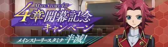 合同会社EXNOA(本社:東京都港区、CEO:村中 悠介、URL:https://games.dmm.com/)が運営するDMM GAMESと株式会社f4samurai(本社:東京都千代田区、CEO:金 哲碩、URL:https://www.f4samurai.jp/)は、スマートフォン・PC向けゲーム『コードギアス 反逆のルルーシュ ロストストーリーズ』にて、メインストーリー新章が追加されたことをお知らせいたします。