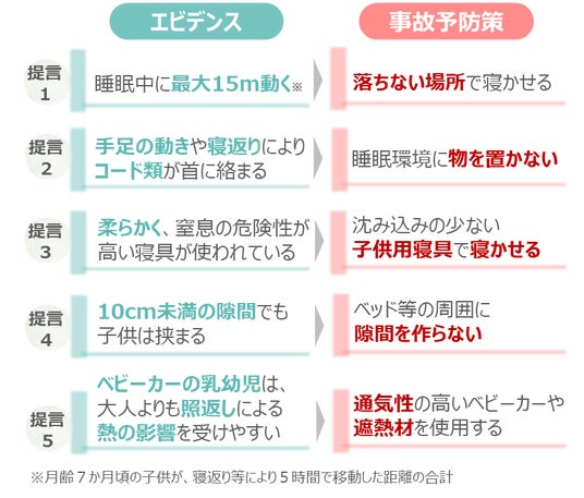 この取組の一環として、このたび、子供の睡眠環境における事故に関する予防策(提言)を作成しましたので、お知らせします。