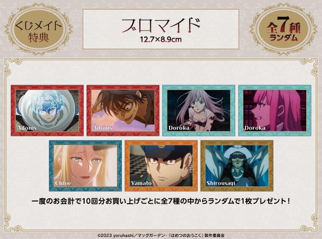 漫画・アニメのオリジナルグッズを販売する株式会社アルマビアンカ(本社:東京都中野区、代表取締役:坂井智成)は、自社オンラインくじサービス「DRAW!DRAW! -ドロー!ドロー!-」にて11月20日(月)よりTVアニメ「はめつのおうこく」オンラインくじを販売いたします。