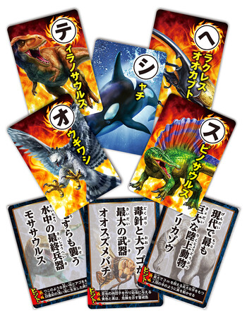 「最強王カード」としても楽しめる絵札(取り札)には、これまで「最強王図鑑」に出てきた、動物、絶滅動物、恐竜、昆虫、水中生物、空中生物から選抜した選手が登場する。