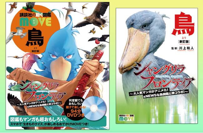 子どもに大人気の図鑑「講談社の動く図鑑MOVE」シリーズの新刊『鳥 新訂版』の表紙を飾るハシビロコウと、累計650万部を突破した週刊少年マガジンで連載中の『シャングリラ・フロンティア』のスペシャルコラボが実現しました!
