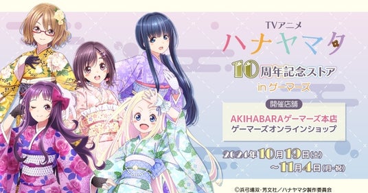 株式会社カードラボ ゲーマーズ(本社:東京都豊島区、https://www.gamers.co.jp/ 以下ゲーマーズ)は、2024年10月19日(土)より TVアニメ「ハナヤマタ」10周年記念ストア inゲーマーズ を開催することをお知らせいたします。