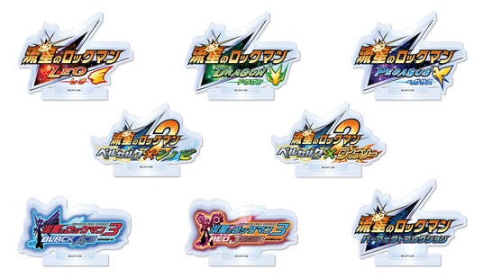 『流星のロックマン』にてロックマンが変身した「スターフォース」の姿をかわいくデフォルメ化した「マスコットぬいぐるみ(S賞)」や『流星のロックマン3』にて登場する「ノイズチェンジ」のデザインを使用した「アクリルスタンド(B賞)」など、各タイトルに登場するロックマンの変身姿を使用したアイテムを多数展開! ほかにも全8タイトルのロゴを使用した「アクリルブロックスタンド(C賞)」などのコレクタブルなアイテムもご用意しております。